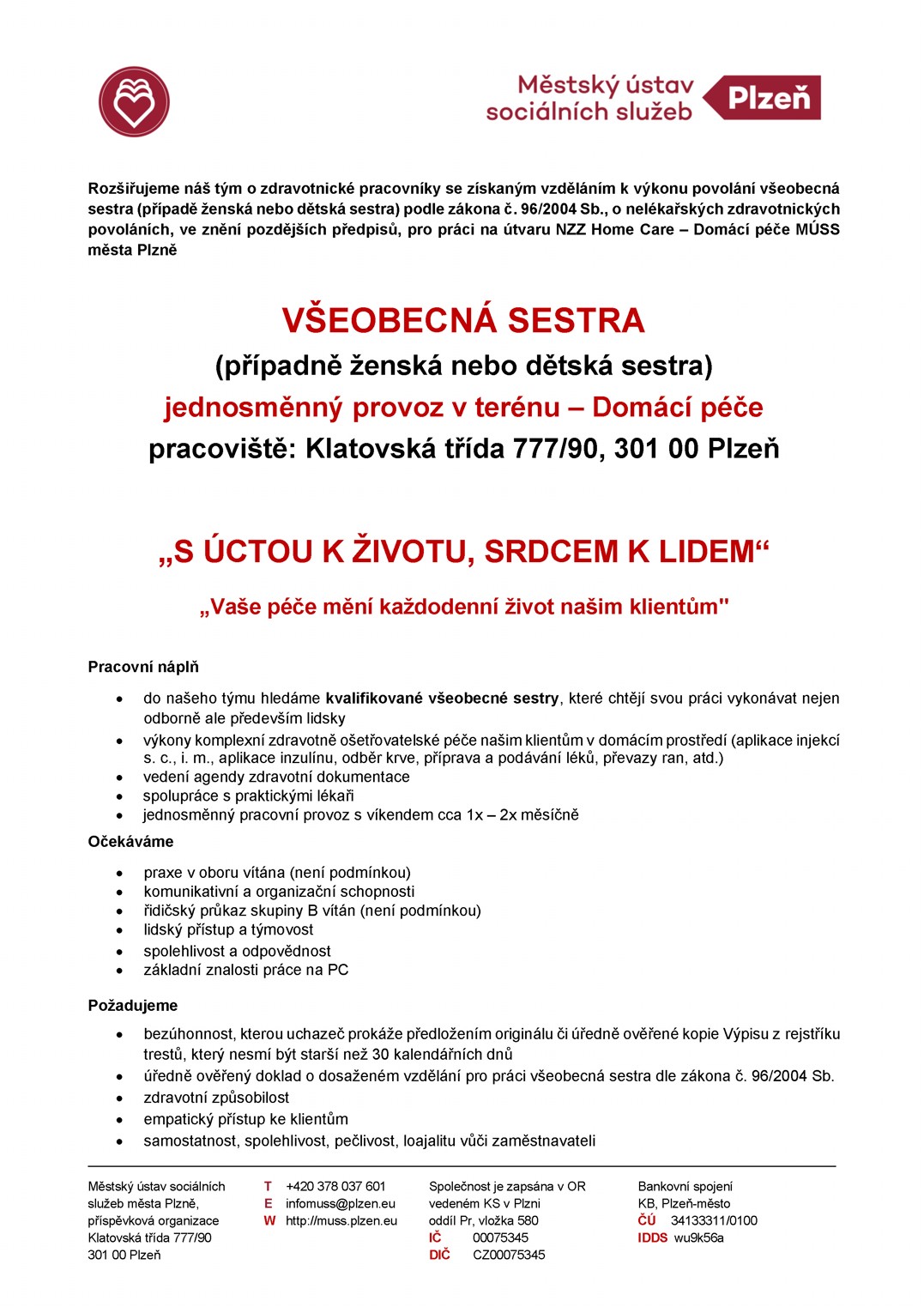 VŠEOBECNÁ SESTRA – DOMÁCÍ PÉČE Všeobecná sestra - Domácí péče Formát: pdf, velikost: 158 KB Souhlas uchazeče o zaměstnání se zpracováním osobních údajů Formát: pdf, velikost: 626 KB